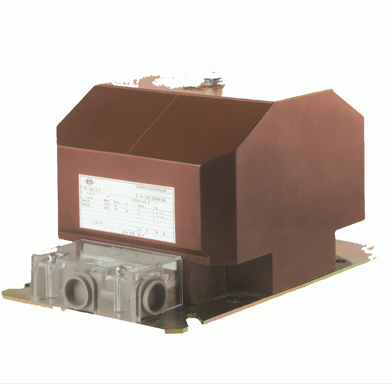 Der Sekundär-Klemmkasten besitzt eineplombierbare, durchsichtige Abdeckung aus Makrolon. Die Einbaulage ist beliebig. Angaben über Mindestabstände zwischen den Phasen und gegen geerdete Anlagenteile können nicht allgemein verbindlich gemacht werden, da diese im großen Maße von den Einbauverhältnissen abhängen. Der Wandler kann über die rückseitig vorhandene Erdungsschraube oder direkt durch Verbindung der Bodenplatte mit dem geerdeten Gerüst der Schaltanlage geerdet werden.