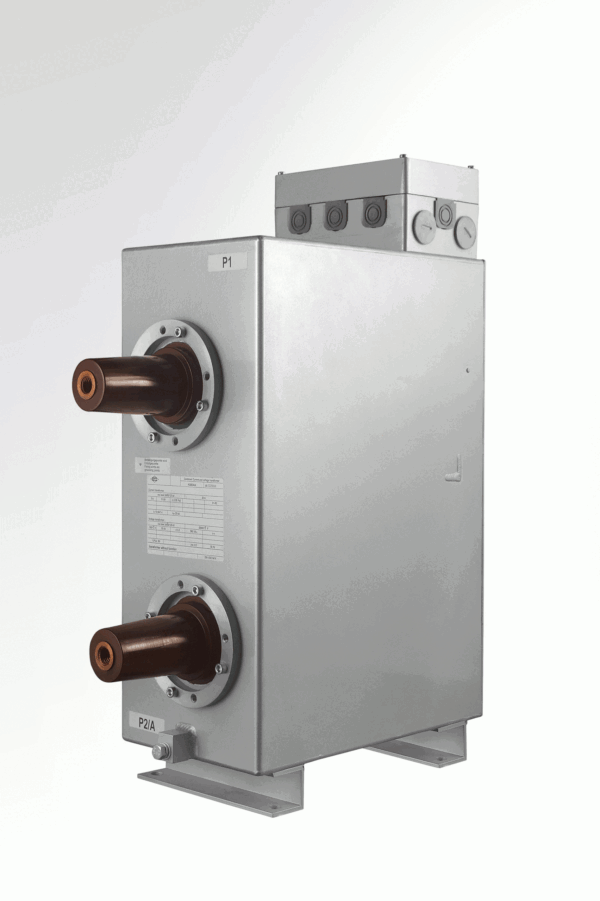 KGBEI / KGBEA 12  | 24 | 36 | 12 – 36 kV  metallgekapselter Innenraum-Kombiwandler mit induktivem einpoligen Spannungswandler- und Stromwandlerteil, berührungssicher. Das Aktivteil besteht aus einem einem Schenkelkern mit Primär- und Sekundärwicklung. Die Potentialverbindungen des Gehäuses mit der Erde erfolgt über die Fußbefestigung. Der Hochspannungsanschluss ist als Innenkonus (KGBEI) oder Aussenkonus (KGBEA) – Geräteanschluss gemäß EN 50181  ausgeführt, geeignet für Kabelsteckteil A, B, C oder Größe 1 und 2. Der Sekundäranschluss erfolgt über den Klemmkasten. Kabelschuhe der Leitungen an den entsprechenden Klemmen mit den Schrauben, Kontaktscheiben und Scheiben anschließen.